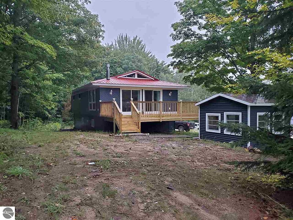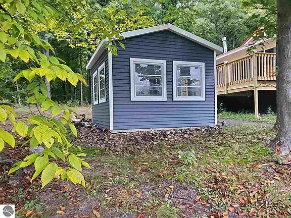Beautiful vacation home in the sought after Lakes of The North community. So many new features including new siding and new roof all done by a licensed builder. This home has a strong foundation with 2x6 framing. Room for your whole family and some extended as well in the 4 bedroom and 2.5 bath home with a huge bar downstairs for gatherings and a garage for storing all your toys. An extra shed located in the front of the home could be used as a workshop, she shed or sauna. A new deck on the front of the home is a perfect setting for dinner or enjoying the evening. The Lakes of The North has multiple ammenities which include access to the clubhouse, pool, spa, game room and exercise room. Lakes of The North has a golf course, private member Lake Harold which gives you access to the beach house, bathrooms, covered picnic area, canoes, kayaks, paddleboards and rowboats. Basketball and volleyball courts along with tennis, pickleball and shuffleboard are also available. Don't miss out on owning your slice of northern living.