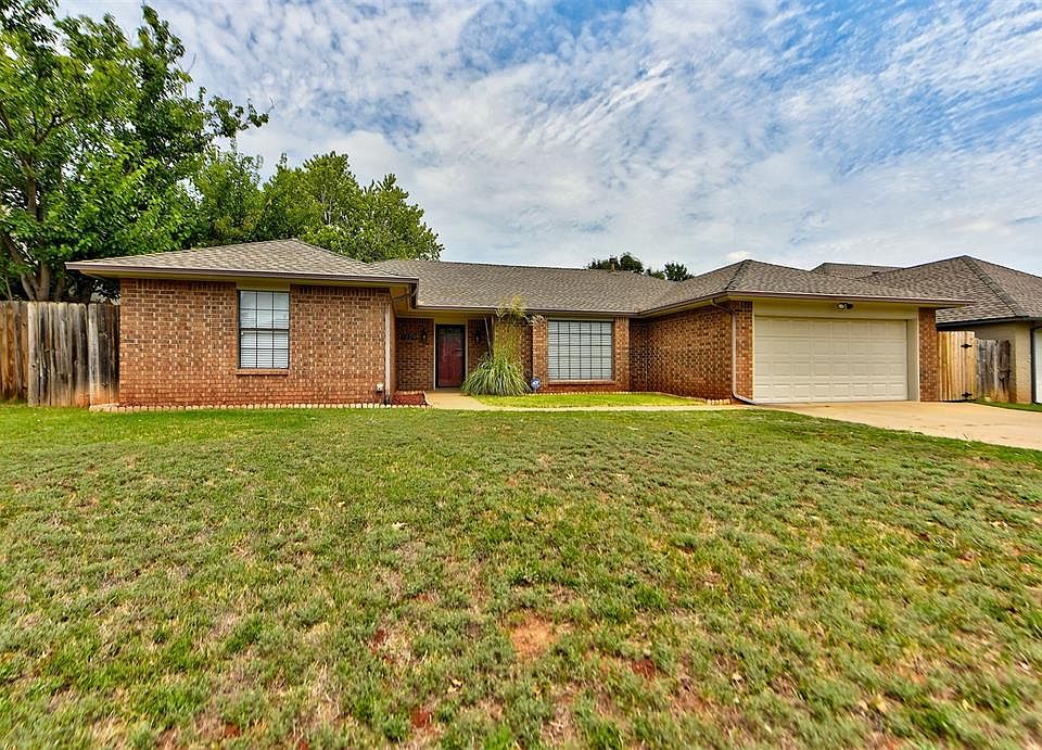 Great location with easy access to schools, dining, entertainment and more! This beautiful red brick home has been well maintained and updated. Large open living space features wood look tile and high ceilings. The kitchen features granite countertops with plenty of space for all your entertaining. The two full baths and the half bath have been updated as well. This home is ready for move in. Large covered back patio and mature trees. This home is minutes from the Kirkpatrick turnpike.