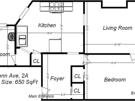 - Total interior livable area: 650 sqft