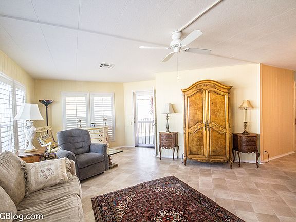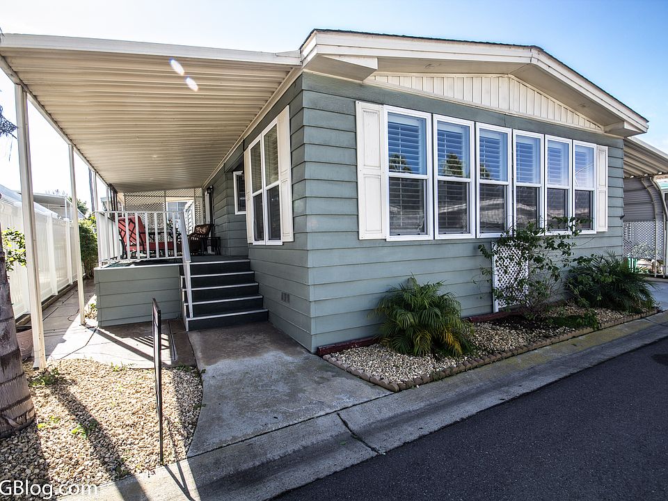 Live 2 blocks from the beach in Carlsbad CA - only if you are over 55. Enjoy the ocean breezes, the blue of the sky, the community with 10 lakes, heated pool, hot tub, sauna, library, fitness center, recreation room and many planned activities! Chose this home - reasonably priced, lowest land lease of $1,450 per month, and a very good loan available. 2 bedrooms, 2 full baths, 8X22 foot covered front porch, stamped concrete patio, living and family rooms, inside laundry room. A must see home value priced.