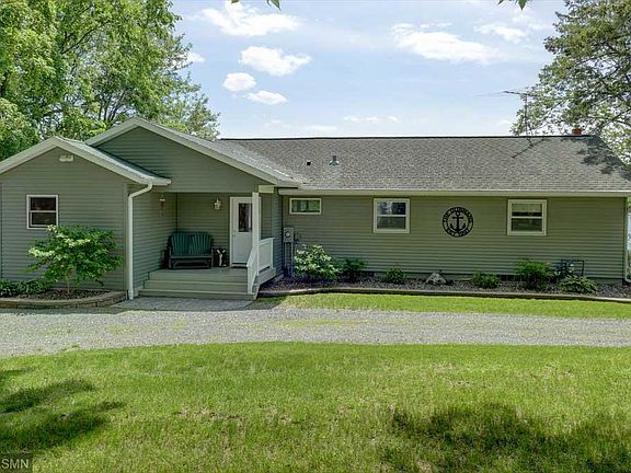 Immerse yourself in the Lake Life at this fantastic property available on Bear Trap Lake. Situated on a premier area of the lake, the 100’ of sandy frontage is perfect for kids of all ages. Unwind after a fun day on the water and watch the sunset in the screen porch. Enjoy a meal on the beautiful deck or entertain on the stamped concrete patio below. Filled with an abundance of natural light, the main level features pine vaulted ceilings, LVP flooring in the kitchen and living room and large windows facing the lake. There's plenty of storage for all your lake toys in the boathouse or through the basement storage area with direct access to the lakeside. Recent updates include a master suite addition (2020) and a main bath remodel (2021). Need more room? There’s room to expand on the roadside. The property is served by municipal sewer. With over 1,400 acres, a Marina and restaurant; Lake Wapogasset & Bear Trap offers endless fun as you define your Lake Life.