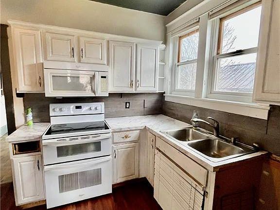 Very large 3 bedroom 1.5 bath twin home situated on a large lot offering a brand new high efficiency gas furnace, natural wood work, hardwood floors, glass French doors between the living room and din rm, modern 2nd floor full bath, oversized 3 car garage. The third level could offer additional living space. Ready for immediate occupancy