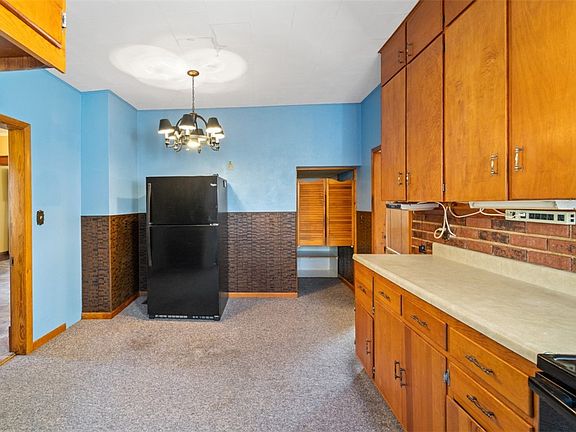 Situated on a picturesque corner lot, with a well-landscaped yard that includes both a garage attached with a breezeway and storage shed, this home has great curb appeal for a new buyer. With newer siding and shingles, and an oversized drive and poured patio, the exterior is neat and low maintenance. Inside, original woodwork has been preserved throughout much of the home, adding character and warmth. The first floor has spacious framed doorways and natural light, and the living room is open to an office nook with built-in storage. The kitchen is quite large with potential for various layouts and even a table for coffee in the mornings, and a separate dining room means plenty of space for hosting holiday meals. The main floor also includes a bedroom, a three-quarter bath, and a huge laundry space with plenty of room for extra storage or setting up a mudroom for backpacks and jackets. Upstairs, three more bedrooms and a very large full bath offer space for kids or guests. With so much space and an affordable price, this home will go quickly so schedule your showing today.