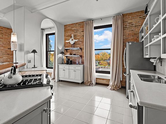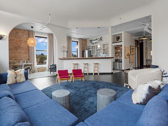 New Year!! New Price!! Penthouse Living With Rocky Mountain Views. This 1788 square foot 3 bed/2 full bath condominium offers its new owner a top-of-the-world view from one of the highest buildings in Kalispell. Featuring exposed brick walls, wood accents, high ceilings, and open concept living space, this dwelling is the perfect mixture of history with industrial modern design. View the mountains and tree canopy from your 280-degree picture windows, and entertain with style inside, or on your private rooftop deck. The bedrooms are quiet and private with a luxury hotel vibe. Other amenities include a freight and passenger elevator, gym, conference room, community kitchen, security system with locks, and gear storage. HOA fees cover all utilities and more. This perfect unit rests in the heart of Kalispell's Historic East Side and is just minutes away from the city's many eateries, brew pubs and shopping boutiques. Call Austin Baumgarten 406-471-1847 or your real estate professional.