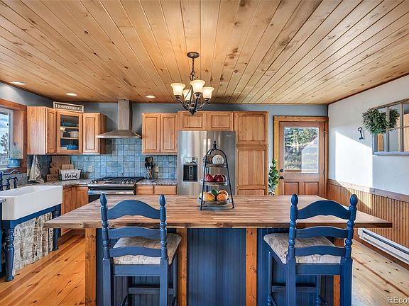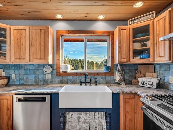 Embrace mountain living in this exquisite Colorado home, offering 2,608 finished SF of beautifully updated space. This 4 bed, 3 bath residence features a fully remodeled kitchen with leathered granite countertops, stainless-steel appliances, and a butcher block island. The main floor boasts pine floors, while the basement showcases newer luxury vinyl. With 2 bedrooms on each level, the home provides ample space and comfort. The unfinished portion of the basement provides a 3-car garage, equipment room & a storage area that could act as a 2nd kitchen with a huge farm sink, freezer & 2 fridges. The home has a newer upgraded Rinnai on-demand water heater, & the septic tank was recently replaced. Step outside to enjoy the expansive deck with breathtaking mountain views and BBQ with the already piped in propane line or explore the 35-acre property that is covered in trees, offers a beautiful pasture area and is about 85% fenced. The outdoor amenities include a 56x42 Cleary building with concrete floors, 2 stalls, & 2 milking station and a versatile new structure perfect for a greenhouse or animal shelter. A fully fenced pasture area is ready to contain your furry friends. A charming tiny cabin is just a peaceful and quick walk behind the home. This cabin is equipped with wood floors, electricity, a wood stove, and its own deck. Enjoy year-round comfort with 3 wood stoves and baseboard heating. A new roof is on schedule. Nestled on a private street with no neighbors in sight