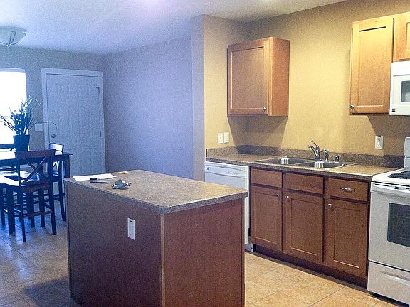 Beautiful two bedroom unit in new fourplex near center of town. Detached garage, off-street parking, balcony, eat-in kitchen with island, all appliances included (including washer/dryer). Bright big windows. Rent is $1,200 plus electric. $1,200 security deposit required. We provide water, sewer and trash along with all lawncare and snow removal. No smokers. An additional garage is also available for an additional fee. Now accepting applications. Available Oct 1. Owner pays trash, water and sewer
