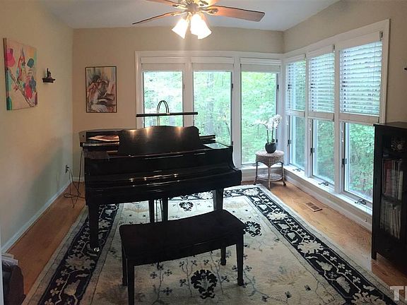 The home is three bedroom contemporary design with 2 +1/2 baths. The Master bedroom is on the 1st floor. The home is located in "The Woods" section of Fearrington. Village in a cul de sac on 1.5 wooded acres. This is a very low maintenance property. Features include: Newer hardwood flooring, Kitchen with quartz counters, stainless appliances, custom cabinets, Vaulted Ceilings , Skylights throughout, Sun Room , Extended Dining Room, Loft/ office area , and two second floor bedrooms .