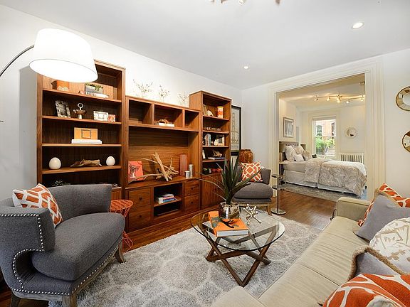 Fantastic original detail and superior width make this renovated mid-town row house a wonderful find. Primary kitchen features stainless steel Sub-Zero, Viking and Miele appliances, wall-mounted pot filler, custom cherry cabinets and granite counters. Elegant formal dining room easily accommodates your largest gatherings with 10' ceilings, "conversation-starter" ornate plaster detail and contemporary candelabra. 8' pocket doors give way to sun-filled living room with arched opening to additional den or office. Primary bedroom enjoys original tin ceiling, triple Marvin windows and huge walk-in closet. Indulgent baths offer flawless tile work, rain shower heads, stainless steel towel warmers, floating spa benches, heated floors, frameless glass shower enclosures and Kohler & Newport Brass fixtures. Parlor level features additional bedroom, generous great room and summer kitchen with glass backsplash, under-cabinet lighting, granite counters, Liebherr appliances and garden views through a wall of windows. Outside - your oasis: a 600sf private outdoor space paved with Belgian block and bluestone and enclosed by a handsome cedar fence. Basement with 6.5' ceilings is full of potential and currently offers ample storage, laundry and separate work-room with carpenter's bench. Classic brick facade, oval skylight, wide-plank floors, architectural panel moulding and recessed lighting add to the appeal of this gorgeous home. All this on a coveted, leafy block of Bloomfield St close to Hoboken's best shops, restaurants and parks with easy transportation into NYC.