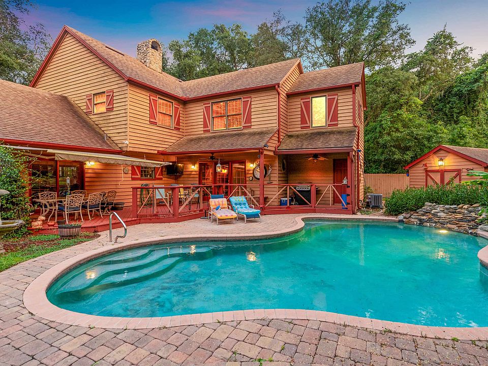 Discover 723 Camelia Trail, a stunning two-story residence with only one owner since it was built, located in the serene Moultrie Trails neighborhood of St. Augustine. This Contemporary Traditional home offers exceptional value on a spacious .44-acre lot. Inside, enjoy a thoughtfully designed layout with classic and modern elements. Features include a double-sided fireplace, multiple living areas perfect for entertaining, a large kitchen island, and a convenient wet bar. Easy access upstairs thanks to the dual staircases, all bedrooms provide a private retreat, while several half bathrooms downstairs are ideal for guests. The backyard is an inviting open canvas with a beautiful in-ground pool and lush landscaping, ready for your ideal outdoor living space. Centrally located, you're just minutes from Historic downtown St. Augustine and our beautiful beaches. This home is a true blend of great location, strong value, traditional warmth, and contemporary elegance.