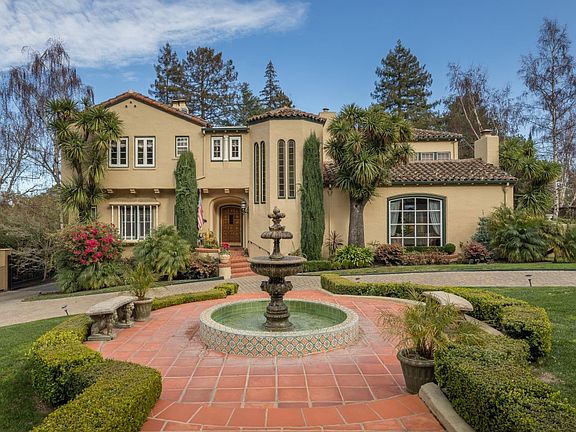 Classic Mediterranean in prime lower south Hillsborough. Beautiful grounds, approx half acre tiered fountain and circular driveway. Hardwood and tile floors, exposed beams with corbels, graceful arches and other architectural details give a nod to the home's circa 1928 heritage while remodeled gourmet kitchen, dedicated office, heated bathroom & kitchen floors, and sumptuous master bath add luxurious amenities for today. 2-story floor plan is thoughtfully arranged w/5 bedrooms & 4.5 baths, including main-level suite. 1BR/1BA guest house w/ kitchenette and private garage, perfect for extended family members. The grounds are equally impressive w/lavish pool venue mindful of a European resort, stretches of lawn and roses edged w/manicured boxwood, & all in a very private setting. With superior architectural details, a wonderfully functional floorplan, & location in a most prestigious community midway between SF and Silicon Valley, this is indeed a very special place to call home.