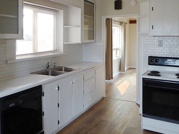 Two bedroom and one bathroom house with on-street parking. Beautiful Craftsman Style home with new paint, flooring, countertops, window coverings, and fixtures. Large living room with pellet stove, extra space for office, Spacious kitchen with plenty of cabinet space, all appliances including dishwasher/garbage disposal, separate dining area, laundry area with washer/dryer hook-ups, two large bedrooms with oversize closets, and bathroom with tub shower. Fully fenced back yard patio area with alley access. Located close to Eureka High, Carson Park, Henderson Center and downtown. Water and yard care paid. No smoking and no pets. One year lease. Landlord pays water and yard care. No smoking and no pets.