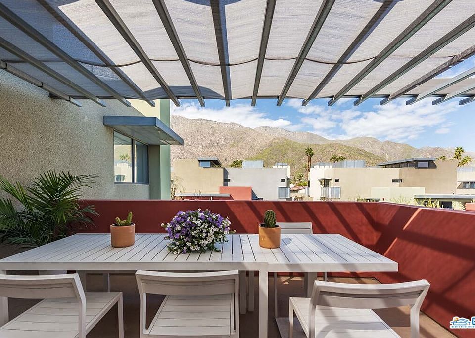 Welcome to 48@Arenas, a small quiet enclave of modern townhomes just blocks from the heart of Palm Springs with excellent restaurants, shopping, entertainment and all the fun within an easy walk. While relaxing at home, you will truly enjoy the incredible mountain views from the large private deck off the upstairs master suite. The deck also has outside access from your gated front patio so guests can easily join you for a friendly gathering under the stars. This home is well designed with natural light enhancing the open floor plan. The first level offers sliders from both the family room and the downstairs master to the private front patio and the upstairs loft master suite is enhanced by a view of the mountains from the clerestory windows. The warmth of beautiful light hardwood flooring in the entry, both bedrooms and the floating staircase make a dramatic statement. Professionally designed by California Closets, the bedroom walk in closets are remarkable and truly maximize the space. The modern kitchen is open with a great breakfast bar with seating to chat while meals are prepared. With the close proximity to downtown and being located on Fee Land (no land lease), you will certainly enjoy all this home has to offer. This unique property is a rare find don't miss out, come take a look!