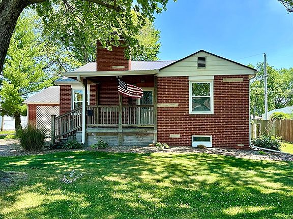Will qualify for all loan programs!!! Quality Construction, great layout, spacious rooms, and updates is what you will notice when touring this home. It doesn't get any better than this if you want close to Dancey Field! A welcoming front porch will invite you in and the gorgeous brick with bedford accents you will appreciate. The living room is large and has a tongue and groove accent wall. The hardwood floors in this home are beautiful and durable. A convenient coat closet hides away shoes and jackets. Entering the kitchen, you will notice brand new flooring, paint, and room to enjoy meals. There is a movable cabinet so you can coordinate how you desire. The window over the sink will give you a great view over the backyard. The paint and flooring are stylish and updated. The two South bedrooms are both great size and have ample closet space. There is an additional closet in the hallway giving you space to store linens and necessities. A large bathroom that has been updated is located on the South side as well, and even has a hamper area. The closets have automatic lighting, when you open, you don't have to worry about finding the switch. On the North side of the home, you will find a sunken primary bedroom with an En Suit Bath. The bedroom has an abundance of closet space also. Just off of the kitchen you will step down to a rear entry area, there is a closet with custom shelving that is perfect for canned goods. This area will lead you to the basement. The steps to the basement are extra wide making moving furniture a breeze! There are two areas that could easily be transformed back into bedrooms, and closets are already there. There is a shower area near the laundry also. Tons of room down there and Basement is sealed and has a sump pump (Woods Basement System). Heading out to the backyard you will love the covered patio area. There is a partial fence, and an older storage shed. Great yard with shade trees and perennials. This solid brick home has seen several updates in recent years, including metal roof, windows, flooring, paint, sink, lighting, electrical, and more. Hard wood floors throughout the home. Located near new elementary school & football/baseball fields.