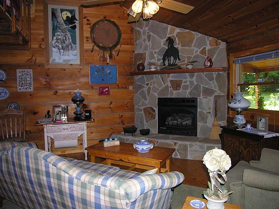 Park-like setting, with a small reed lined pond, a gazebo, lots of shrubs and flowers, and porches to enjoy your surroundings. Well maintained log home in the heart of Coker Creek, with easy access to hiking, biking, fishing, where gold was mined before the California discovery. Price has been reduced but is firm at this lower figure. The upstairs has an open loft, plus a bedroom and bathroom. One room presently used as an office, and there's a one-car garage. It's private, but easy to get to.