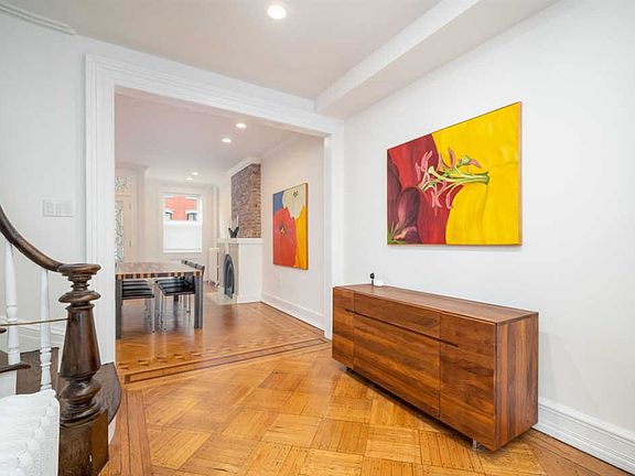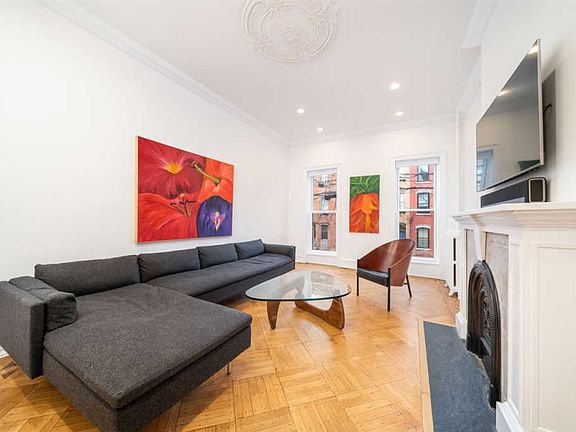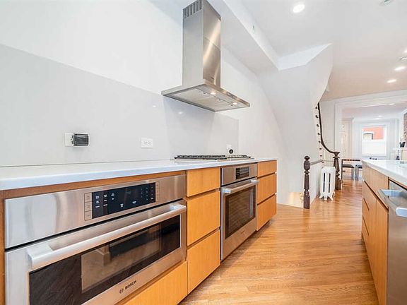Beautifully finished row house in the heart of Hoboken on one of Hoboken's most desirable streets. Updated to combine original charm including exposed bricks, inlaid wood floors and french doors This home features a renovated kitchen w/ Aurea Stone quartz counter tops and top-of-the-line Bosch S/S appliances. Two renovated full bathrooms with Grohe and Duravit fixtures. Two working fireplaces, 4 large bedrooms, parlor and added skylights in the master bedroom and top floor bath. Central air, finished yard, new windows, new roof and a high and dry semi-finished basement. This commuters dream has easy access to restaurants, parks, shops and transportation to NYC.