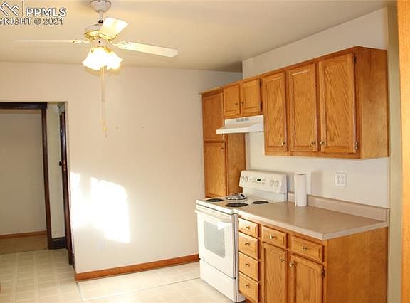 Move in ready home in the town of Calhan. 2 beds 1 bath plus a bonus room on the upper level. Large bedrooms, and updated eat-in kitchen with lots of cabinets and counter space. Electric range with vent fan, side by side refrigerator with freezer on the bottom, stainless steel sink. Updated vinyl windows and freshly painted. Home is stucco with vinyl dual pane windows updated wiring, new water heater in 2004, furnace in 2013, AC in 2014, new roof in 2019 with new sheeting. 1 car detached garage with vinyl siding, large corner lot with landscaping and fencing and mature trees with a sprinkler system Home has an nice mudroom entry and an enclosed porch/sunroom off the kitchen Home is in very good condition and is move in ready.