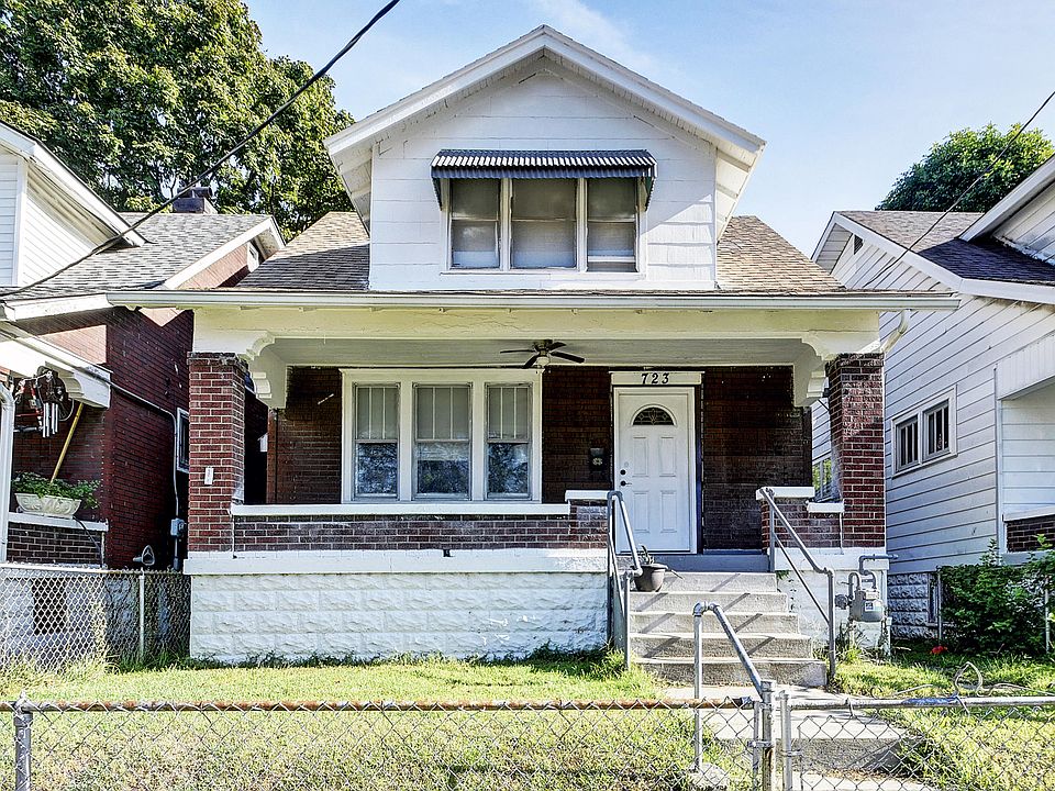 Hot location! Hurry on this 4 bedroom 2 full bath home that is only 1 block to Churchill Downs main entrance. Only 7 blocks from UofL campus. Relax on the huge covered front porch. Tons of updates including wood laminate floors, paint, doors, light fixtures, bathroom vanity, commode, tub surround, kitchen cabinets, granite countertops Tall kitchen ceiling. The main floor has 3 good size bedrooms and a full bath. Upstairs offers 2 huge bedrooms, a full bath and a loft offering lots of possibilities.