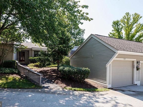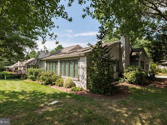 Home for the Holidays at Hershey's Mill -- Spacious, End Marlborough with Sun Room on premium, tree-blessed cul-de-sac home site with golf course views and ample parking! Location par excellence! Just finished wallpaper removal and fresh, neutral paint! It's Your Time! Ready to take advantage of the easy lifestyle living at one of the area's premier 55+ active adult communities? Ready to downsize but just not too small? This 2,700+ sq. ft. residence may be just the ticket! Superior, cul-de-sac location with desirable one car garage right at the home's front walk and extra parking near home-perfect for holiday visitors! Enter the pleasant open floor plan at the spacious tile foyer. Abundant large windows infuse the interior with sunlight during the day and ample recessed lights and ceiling fans/lights brighten the rooms with an easy flip of a switch at night. The generously sized living room boasts an eye-catching fireplace. This inviting space opens to both the striking, sky-lit sun room and elegant dining room, creating an open, airy ambiance. The expansive sun room is enhanced by a vaulted, sky-lit ceiling, floor-to-ceiling windows/sliding glass doors, two ceiling fans, custom tile floor and walk-in storage closet. The delectable dining room features show-off parquet wood floors and is sized for your largest dinner parties. The adjacent Eat-in Kitchen offers a center island, 2 pantries, Corian counters, attractive easy-care laminate flooring, home desk center, floor to ceiling built-in shelves plus plentiful recessed and task lighting. The spacious main bedroom provides a calm decor, built-ins, cozy, golf-course view window seat and room for your largest furniture. French doors open from the bedroom to the spectacular Sun Room for divine morning coffee overlooking the golf course. Two walk-in closets, dressing/vanity area and bright white tiled shower add to the allure. Two other cheerful, well-sized bedrooms (one used as den), a lovely tiled hall bath and sizable laundry room complete this beguiling floor plan! A huge, unfinished basement, with extra work sink, fulfills your storage space needs. Welcome to the enchanting Hershey's Mill lifestyle with gated security, community pool, walking trails, sylvan open space/ponds to enjoy. Jump into activity with tennis courts, pickle ball, wood shop, gardening, social outings/activities and more. For the avid golfer, memberships are available at additional cost to take advantage of the beautiful course. Or just sit back and relax with a good book at one of the peaceful community common areas or right in your own view-filled sun room--Your personal resort lifestyle awaits! One time capital contributions to your Inverness Village ($1,675) and HM Master Cap.Improvement ($2,216) due from buyer at settlement.