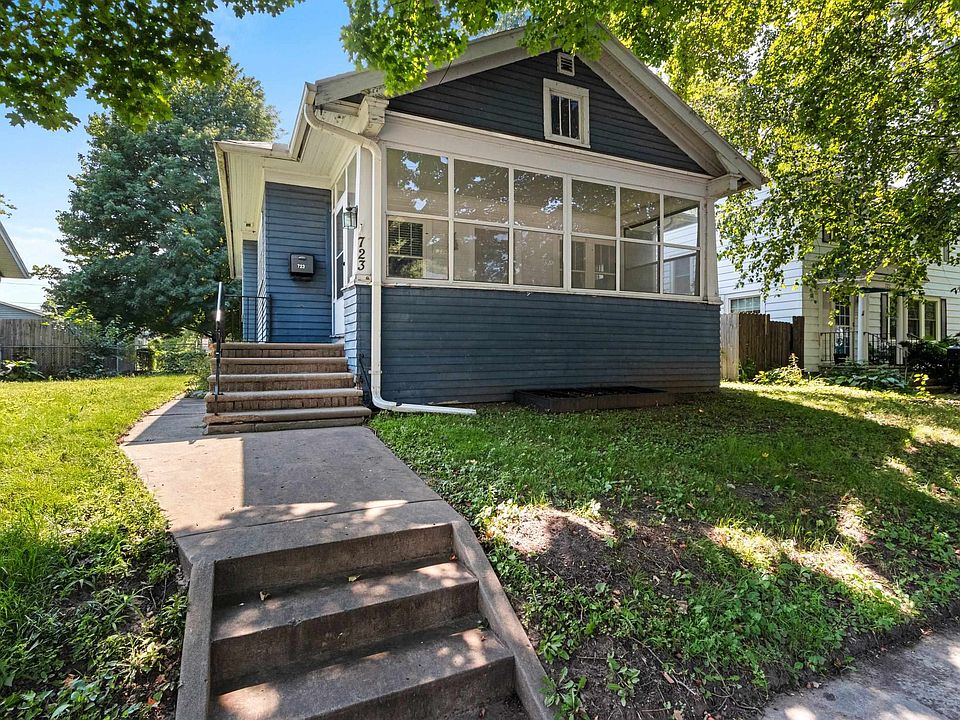 Character and charm describe this home and ready for immediate occupancy. Harwood floors are throughout the dining, great room, and bedrooms, and feature original woodwork. Two spacious bedrooms, one bedroom has direct access to the full bath that was recently updated. Fenced yard, enclosed front porch, and 1.5 stall detached garage with opener. Property being sold "as-is" condition.
