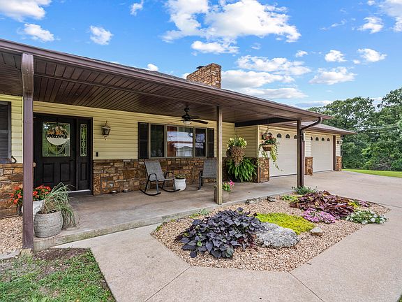 Discover your own slice of country paradise with this beautiful 2-bedroom, 2-bathroom home set on 3.45 +/- acres of picturesque land. This unique house is a rare find, combining a cozy home with a large 40x60 pole barn. Close proximity to Branson West with shopping and entertainment, and only 15 minutes from Table Rock lake! This charming property offers a peaceful escape while providing modern comforts. Enjoy the best of both worlds with a serene residential setting and easy access to local conveniences. The kitchen is a heartwarming blend of functionality with a farm house feel and equipped with updated laminate countertops and ample counter space which make meal preparation a breeze! It is perfect for cooking and entertaining. There are many features including a warm and welcoming atmosphere which boasts of large windows, a cozy fireplace and high beam ceilings. This space is ideal for relaxing. The master bedroom is a peaceful retreat with an en-suite bathroom, walk-in closet, jetted soaking tub and newly redone tiled walk-in shower. The second bedroom is versatile and can serve as a guest room, home office, or playroom, and conveniently located near the full second bathroom. Property has been well maintained and is already wired for Total Highspeed internet, Roof is only 5 years old, HVAC is newer and was replaced in 2021, and serviced July 2024. Private well and septic. This is a fantastic opportunity for those seeking a comfortable and stylish living space in a quiet area. Don't miss out on this exceptional property!