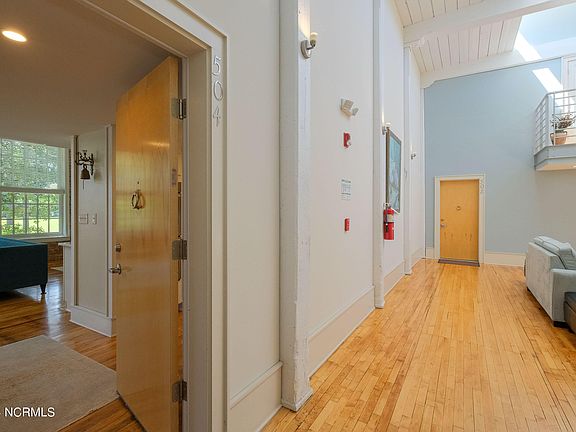 Located in the historic district, just steps from the Albemarle Sound, the Edenton Cotton Mill has been renovated into sophisticated condominiums featuring 17'ceilings with exposed beams, original hardwood floors, interior brick walls, and impressive 5'x12' double paned windows. Completed in 2007, Condo 504 is one of the first original units to undergo a major renovation including new kitchen and appliances, bathrooms, window blinds, custom shutters, additional hardwood floors, and cabinetry. Its location in the mill is prime with a high elevation and six windows overlooking the historic ballfield which is now an open green space. Amenities of the mill include a pool with pool house and a day dock with water access to Queen Anne Creek that is great for kayaking and fishing. Residents enjoy the short stroll through the village and along Edenton Bay to downtown. This Cotton Mill Village has been named one of the top 10 cottage neighborhoods nationwide by Cottage Living Magazine.