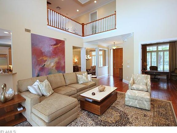 All the loveliness - NONE of the work!! Circle drive welcomes you to this idyllic Olde Florida architectural gem, in the heart and soul of Naples. Great Room has 2 story, soaring ceilings to let natural light filter in, and fireplace to enjoy on cool evenings. Exquisite finishes include wood flooring, top of the line appliances, rich wood cabinetry, propane gas for cooking, generous covered lanais w/outdoor kitchen & entertainment patio, new plantation shutters & drapes, neutral backgrounds, rich moldings, built in closets, all meticulously maintained. Ground floor has Master Suite & additional guest suite w/on-suite bathrooms, while upstairs has additional 2 bedrooms and shared bathroom, w/loft area for relaxing. This home has room to entertain large gatherings, areas to be cozy, or room to escape the busyness. The garage has a 2 car side by side setup, w/additional tandem 3rd car bay within the garage enclosure. The backyard is HUGE and PRIVATE, considering you are in the middle of all that's well known in Naples, fenced and lush with mature landscaping, and a pool and spa right out of the hotel catalogues. You won't ever have to travel to paradise again - here you have found it!