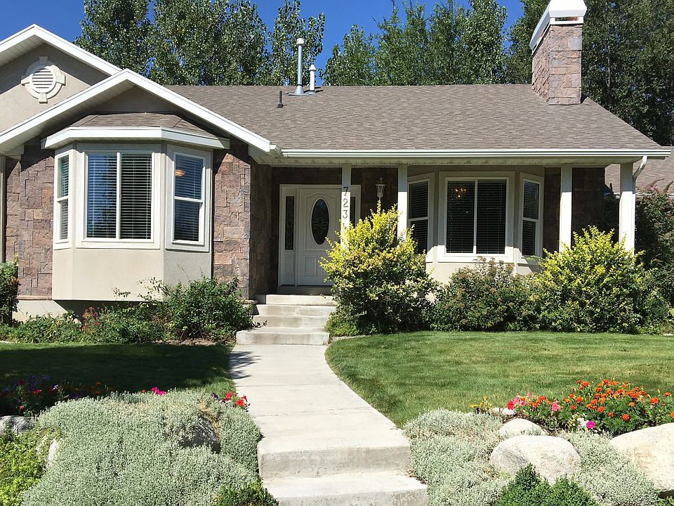Only 1 block West of the Mount Timpanogos Temple!!! Walking distance to Art Dye Park, Highland Glenn Park, walking and bike trails, American Fork High School, American Heritage School, ballfields, and 3 playgrounds . It features vaulted ceilings, granite countertops, fireplace, spacious bedrooms, a built in playhouse with slide in the basement. Beautiful Mountain views!