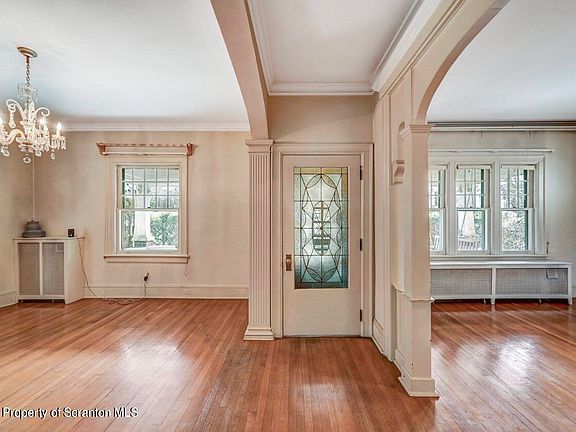 Step inside this all brick Hill Section home and see the beauty of yesterday's craftsmanship. A gorgeous winding staircase greets all guests and sets the mood for this amazing property, lovingly maintained for many years in the family. Beautiful hardwood flooring throughout, crown moldings, built-ins and stunning details on all floors. Enjoy the comforts of the living room fireplace, the beauty of the stained glass/leaded glass windows and let the large rooms and high ceilings be your backdrop for an amazing first floor living space. The hardwoods continue upstairs, as well as more built-ins, two full baths, great closets and picture windows. The third floor is finished and would be an ideal study, extra bedroom or home office. The lower level is also finished with many storage areas and a great space to use for more living space if needed. Rear deck, yard and detached 1-car garage. Walking distance to the University of Scranton, Commonwealth Medical College, hospitals, synagogues and more., Baths: 1 Half Lev 1,Full Bath - Master,Semi-Modern,2+ Bath Lev 2, Beds: 2+ Bed 2nd,Mstr 2nd,1 Bed 3rd, SqFt Fin - Main: 1196.00, SqFt Fin - 3rd: 541.00, Tax Information: Available, Formal Dining Room: Y, SqFt Fin - 2nd: 1156.00