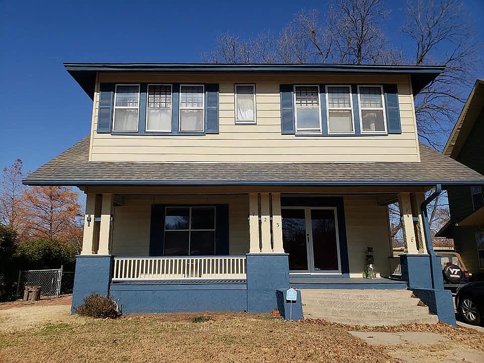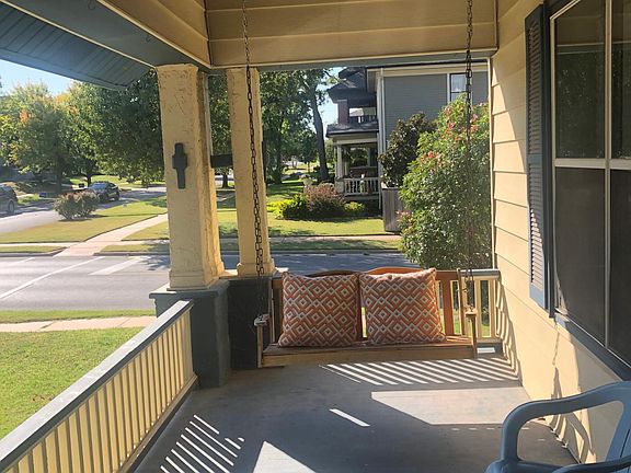 Across street from Mesta Park! Charming bungalow with a front porch made for a swing. Entry foyer greets you with a built in courting bench that is original to the house. You will find wood look tile throughout with ceramic tile in kitchen and breakfast room. Zoned central heating and air, security system and granite countertops. Appliances included are refrigerator, dishwasher and stove, washer and dryer. Aside from the living room, kitchen, and breakfast rooms there is a nice formal dining and den with a half bath. Upstairs are the three huge carpeted bedrooms and 1 3/4 baths. The Master suite has a sitting room and a gas wood burning stove and a 3/4 bath. Also Master has a walk in closet. A ball and claw foot tub centerpieces the main bath. A two car garage. Please do not disturb the tenants. No smoking allowed.