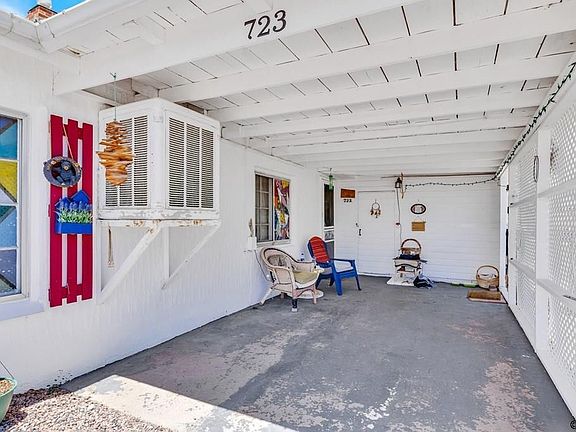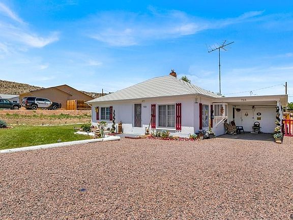 Come take a look at this charming bungalow nestled amongst a beautiful lawn, flowers & xeriscape on almost 1/4 acre on Oak Ave. This historic and quaint home has 2 bedrooms, 1 full bathroom, a kitchen with room for a breakfast table, a lovely living room and a mud room/laundry room to the rear of the house. The flooring is a mixture of retro laminate tiles, and modern vinyl planking in a parquet-style design. The kitchen has 1930s-style cupboards, cabinets & chrome drawer pulls, as well as vintage countertops with chrome edges. A single car, attached carport can also be used as an outdoor living space; it is through here that the current owners enter the house by using the side entrance, through a charming farmhouse screen door. Also near the back entrance is an additional room w/ space & shelves for storage. The electrical throughout the house has been mostly updated, a brand new gas space heater was installed in 2019, the refrigerator was purchased 2 1/2 years ago, and the microwave is 1 year old (which is included). The swamp cooler was serviced less than a month ago and has a brand new pump and a brand new belt. The exterior is a crisp white with pretty burgundy shutters that match fence pickets that enclose the large backyard. In the backyard you'll find a firepit, cornhole/horseshoe pit, wire spool table & stools, an eclectic shed and a "bird paradise"...an artistic sanctuary for birds to perch & feed! Views to the West! Call today to see this darling home!