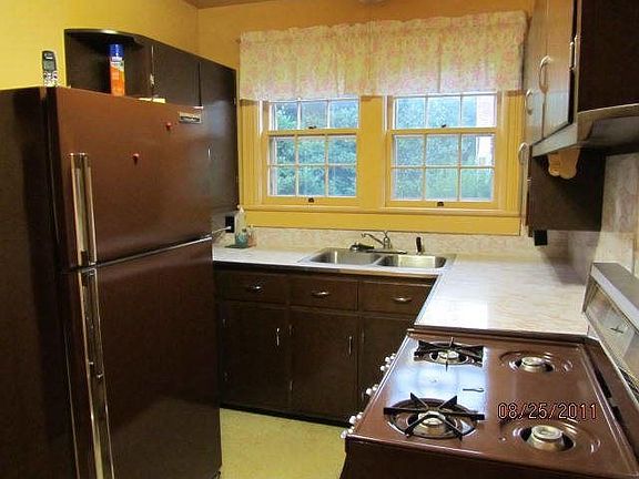 Solid, brick home with a new 2010 roof, permanent steps to partial finished upstairs area with pine floors, radiators and electric; covered front porch; a basement providing great storage plus a lifetime warranty for basement waterproofing; and a 10 x 20 concrete block outbuilding with electric. This home offers many different advantages for the homeowner. Appliances being sold as is. Owned by current seller for 60+ years.