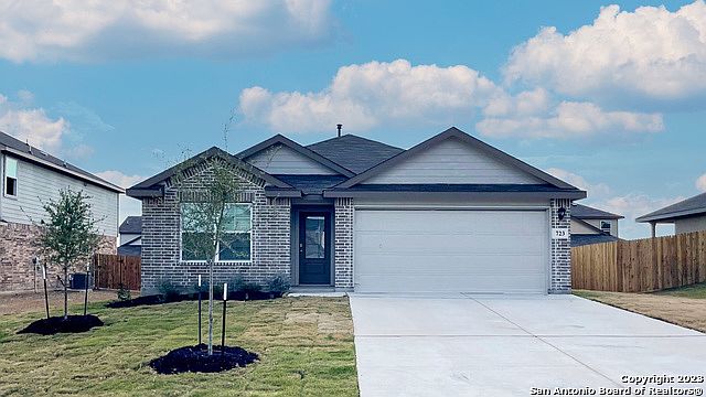 The Bryant is a single-story, 1703 square foot, 4-bedroom, 2-bathroom, layout designed to provide you with spacious, open concept living. Welcome guests as they walk through the elongated foyer with decorative nook to the spacious eat-in kitchen. Facing the family room area, the kitchen includes an oversized island, corner pantry with shelving, plenty of cabinet storage, granite countertops, stylish subway tile backsplash, stainless steel appliances, and gas cooking range. The private main bedroom is located at the back of the house and features a relaxing ensuite complete with double vanities, separate tub and walk-in shower, water closet, and spacious walk-in closet. One secondary bedroom is located off the entry and is ideal for an office space. The remaining secondary bedrooms and second full bath are centrally located off the kitchen, and a spacious utility room is conveniently located adjacent to the family room. Additional features include 3-sides of exterior masonry, tall 9-foot ceilings, 2-inch faux wood blinds throughout the home, luxury vinyl plank flooring in the entry, family room, kitchen, and dining area, ceramic tile in the bathrooms and utility room, and pre-plumb for water softener loop. You'll enjoy added security in your new home with our Home is Connected features. Using one central hub that talks to all the devices in your home, you can control the lights, thermostat and locks, all from your cellular device. Relax outside on a covered patio located off the family room and enjoy full yard landscaping and full yard irrigation.