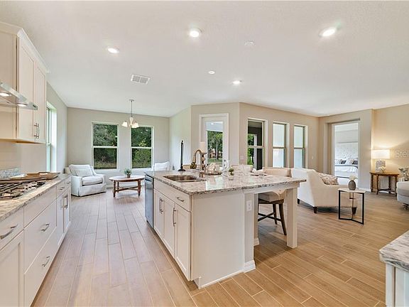 - Interior Features: Eating Space In Kitchen, Open Floorplan, Split Bedroom, Stone Counters, Walk-In Closet(s), Solid Wood Cabinets, Kitchen/Family Room Combo, Tray Ceiling(s), Coffered Ceiling(s)