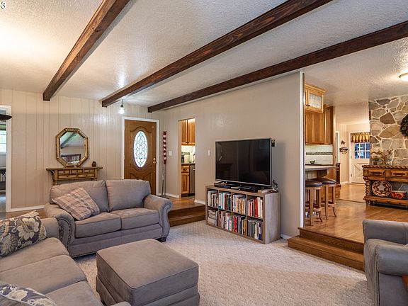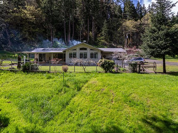 Beautiful ranch home nestled in the trees amongst 15 acres. This private setting includes a spacious 1852 sqft, 3 bedroom, 2bath home with approximately 3.5 level acres and 11 timbered acres. Enjoy sounds of the creek from the covered porch that overlooks a park-like setting, partially fenced with several nice outbuildings. The interior is impeccable with new paint and numerous upgrades including new cabinets, white oak flooring, and vinyl windows. There is state-of-the-art brand new solar panel system - 7.2kw whole house capacity. Plus RV parking with electrical hook-ups. Call for your appointment today!