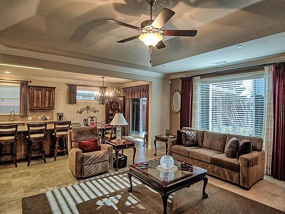 Welcome to this impeccably maintained home in the desirable Highland Park neighborhood. Located at the end of the peaceful Rogue River Way cul-de-sac This home exudes elegance and charm and has a design that sparkles like a model home. Beautiful open floor plan with extensive crown molding throughout, transom windows and coffered ceilings. The kitchen features striking granite countertops, newer SS appliances, pantry and large center prep island with breakfast bar seating. Spacious primary bedroom with an ensuite bath that will not disappoint! Double sinks with granite, tiled shower and walk in closet.