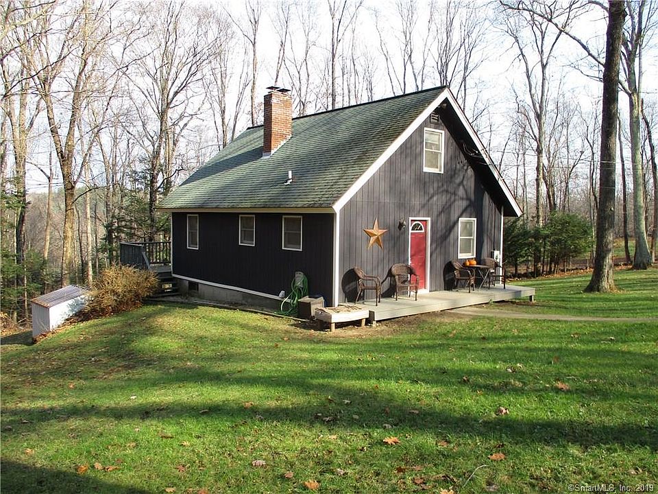 This updated Cape sits on 2.3 lightly wooded acres. The livingroom and dining area are open, with access to the back deck that overlooks the privacy of the lot. There is a first level bedroom with new flooring. On the second level are two large bedrooms. The lower level has a room finished that could be used as a 4th bedroom or office. The wood stove provides an alternative heat source to the electric baseboard.