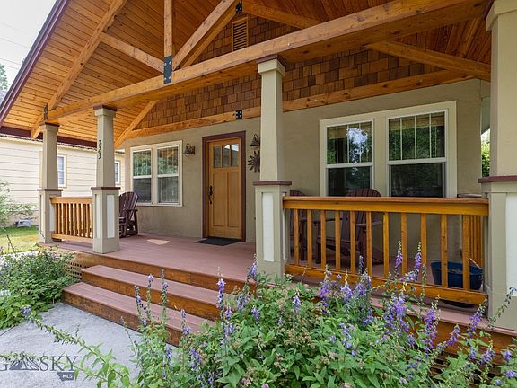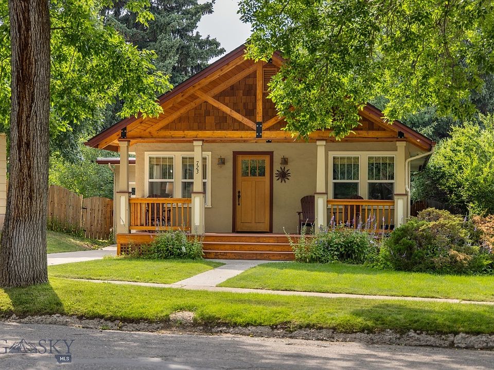 Discover the charm of this craftsman-style bungalow, ideally located in the highly desirable southside of Bozeman. This home is directly across the street from Southside Park which offers tennis/pickleball courts, a playground, and ice skating in the winter. Spanning 2,430 square feet, this inviting home features 4 bedrooms and 2 bathrooms with an open floor plan that enhances its spacious feel. Enjoy the rarity of vaulted ceilings in a downtown home and an abundance of natural light, accentuated by large windows and skylights. The home boasts numerous updates, including elegant plaster walls in the dining room, and beautiful hardwood floors. Modern amenities like air conditioning ensure comfort year-round. The property also includes a full basement apartment with a separate entrance offering versatile living options. Conveniently located near MSU, downtown, and a variety of recreational activities, this bungalow is a perfect blend of charm and practicality. Sold fully furnished.