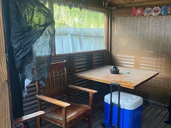 2 bedroom, 1 bath, living room, dining room. Very cool out door bar area and patio for entertaining. Over sized detached 2 car garage.
