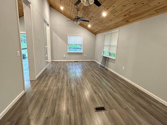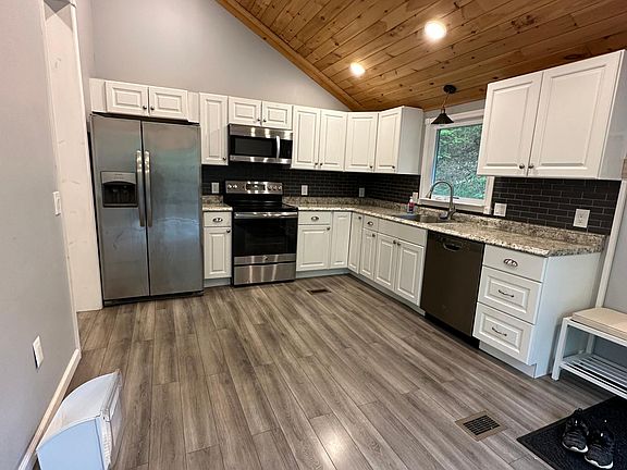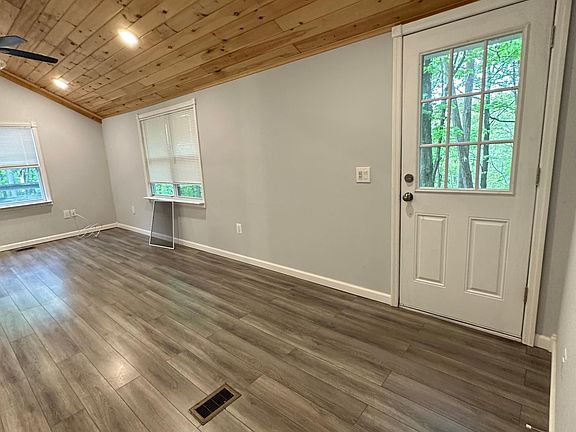 Beautifully renovated, clean and bright house tucked in the trees. High ceilings, lots of windows, this home feels refreshing. Two equal size bedrooms, newly renovated bathroom, and kitchen. Large deck off kitchen, and plenty of yard space, on 6 acres of wooded bliss. The perfect upstate home, 5 minutes to the TSP, 15 min to Red Hook or Rhinebeck. Oil heat, electric hot water heater so you only use oil during the winter. House is newly insulated so extremely efficient. Dogs accepted. Excellent credit and verifiable income requisites. Half month broker fee applies. One year lease. Tenant pays utilities, garbage, lawn and plowing.