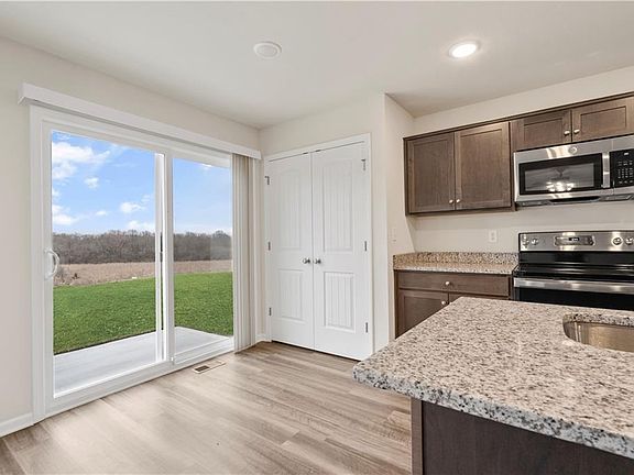 Kitchen has granite counters, large island, and pantry. Master suite has a large bedroom with walk in closet, and