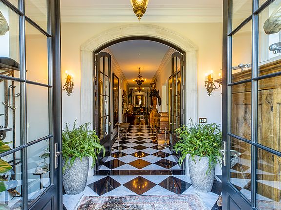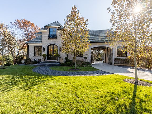 Find yourself perfectly situated in this eclectic European styled home drenched in old world elegance and modern luxury. Privately set on a point on Baker's lake amongst mature trees, this property is undoubtedly the finest double lot and home in The Village of Barrington. Upon entering the foyer and grand hallway you will be greeted by emblematic checkered flooring, monumentally Scaled 11' ceilings adorned with 12" molding, posh 8' doors framed in limestone casing. The taste and style of the exquisite antique and modern imported chandeliers add ambiance that perfectly compliment the European architectural design elements. The lake facing gourmet kitchen adorned with Carrara Marble countertops, 3 Sub-Zero refrigeration units, Lacanche stove and artisan dome porcelain chandelier is complete with an adjacent butlers pantry. The great room boasts cathedral ceilings, herringbone flooring and a grand fireplace. Elegant, spacious first floor master ensuite with custom cabinetry, and 2nd floor Jack and Jill ensuite. Over 2400 sq ft of expansive outdoor decked living space, with pool, surrounded by meticulously manicured landscaping offer unrivaled tranquility. The Pool House provides the convenience of an expansive, detached 1700 sq ft luxury office space with a 6th bedroom. Green features include Solar power, radiant heat in basement and beneath all bathroom floors offering efficiency and comfort. 723 South's features, amenities, quality construction, setting and luxurious style make it The True Gem of the Village.