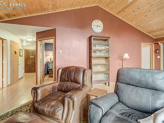 Situated in a picturesque setting with mountain views, this stunning single-family home offers an exceptional living experience on a sprawling 10+ acre lot. As you enter, you are welcomed by vaulted ceilings and floor-to-ceiling windows in the living room, flooding the space with natural light and framing the spectacular scenery that stretches on for miles. A wood-burning, triple-walled fireplace with a blower adds warmth and a cozy atmosphere, perfect for gathering together. Adjacent to the living room is a large atrium, ideal for quiet moments or entertaining while enjoying the surroundings. The main level is designed for comfort and convenience, featuring the master suite, kitchen, dining, and office space. Downstairs in the spacious basement, you will find three bedrooms, each with its own ensuite bathroom and walkout access, providing privacy and comfort for family and visitors alike. With tall ceilings, in-floor heating, a brand-new boiler, and a new water softener and well pressure tank, this home ensures year-round comfort for everyone. A spacious two-car garage with an attached workshop offers plenty of room for projects, hobbies, and additional storage. Outside, the front deck has a dedicated spot for a hot tub, perfect for relaxing and unwinding together. The rural setting also provides unmatched opportunities for stargazing and enjoying nature. The circle driveway offers easy access and ample parking for gatherings, and two sheds provide extra storage for outdoor activities and equipment. The property features a well with an 1800-gallon backup cistern, a 1000-gallon firewater cistern, and a whole home generator for peace of mind. The dual septic tank system has recently passed inspection. Topping off this impressive home is a brand-new class 4 roof, ensuring long-term durability. Combining practical convenience, mountain charm, and ample space for togetherness, this home creates an ideal retreat for those seeking a Colorado escape. Make it yours today!