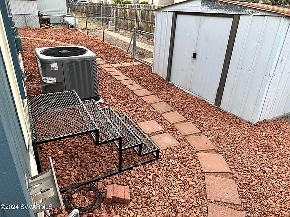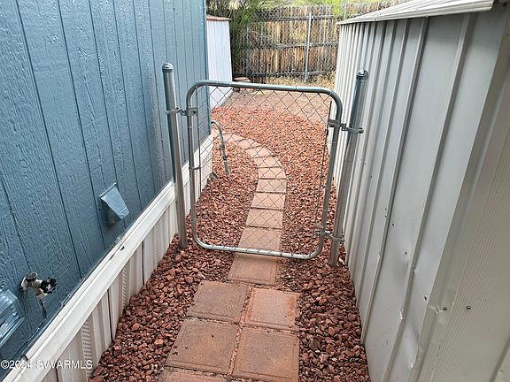 Welcome home to a newly updated manufactured home in The Village Park in Camp Verde. Family Friendly, and Walking distance to many stores and restaurants. 2024 NEW roof, flooring, cabinets, doors, and lighting fixtures. Updated ceiling fans, newer gas stove and refrigerator, and smooth drywall texture throughout. Beautiful Real Marble Countertops in the kitchen and the master bathroom. Two storage sheds, deep covered 2 car tandem carport, and no neighbors to the south for extra privacy. Fully fenced and landscaped with native Sedona red rocks and boulders. Plant your ideas in the adorable fenced garden! Lot lease is the cheapest in the whole Verde Valley....don't let this smoking deal get away from you! Buyer must apply, and be accepted The Village Park. Agent is related to the seller