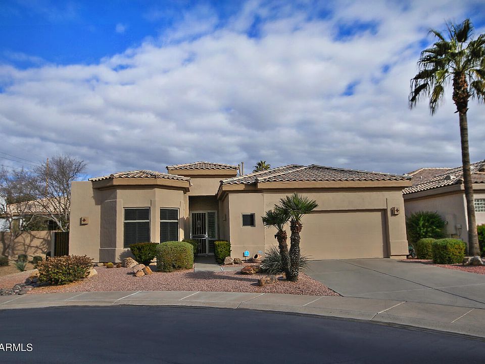 Location!! Reduced to sell! **Features 2 Master Suites** Cul-de Sac lot! Very nice well maintained & situated in a Gated Community with Community Pool & Spa, you will be minutes to everything you desire & in the 'Heart of Scottsdale''. This home shows pride of ownership. Features include Two Master Suites & 3rd Bedroom used as an Office/ Den, bright open floor plan with 16 inch Travertine tile floors throughout. 10' Flat Ceilings with 8' Interior Doors, a large Covered Patio and a Screened AZ Room leads out to a fully developed maintenance free cobble stone patio with gas line to BBQ, Stainless steel kitchen appliances Gas stub, Custom pantry, New exterior paint 2022, Upgraded cabinets, Cul-de-sac lot adjacent to open space, alarm system & more. A Must see! View more improvements see.. Seller notes - Gently lived in as a second home approximately 4 months a year. Sliding doors installed in 2 bathrooms to maximize space, 42 inch Natural Maple Cabinets w/ Built-In Desk. Upgraded Stainless electrical appliances - namely fridge/freezer, stove & microwave. Gas connection for stove if required. Sierra Corian Counters . All windows double glazed & replaced with low E units. All windows have Plantation Shutters. Plan offers TWO MASTER SUITES & a 3rd Bedroom which was previously used as an office. Walk in Closet off main master suite. Ample closet space in 2nd master suite. Large Covered Patio & Screened AZ Room. Exits to Open area. Laundry room with new front loader electric washer & electric dryer. Garage with built-in storage cupboards, shelving and workbench. Additional shelving over garage door and south wall. Patio has brick pavers and roll down shades. Back yard professionally installed, levelled, paved with cobblestone & maintenance free.