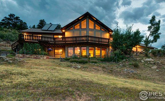 Original owners of this custom built home on 4.2 spectacular acres are offering it for sale for the first time. The home and property have been very well cared for and the pride of ownership is evident.The views of the Northern Colorado Front Range from the home and property are amazing that include night time city lights. This home sits at the end of the road for privacy yet only a few short minutes to town on paved roads. Home also includes a passive solar system, and an open floor plan.
