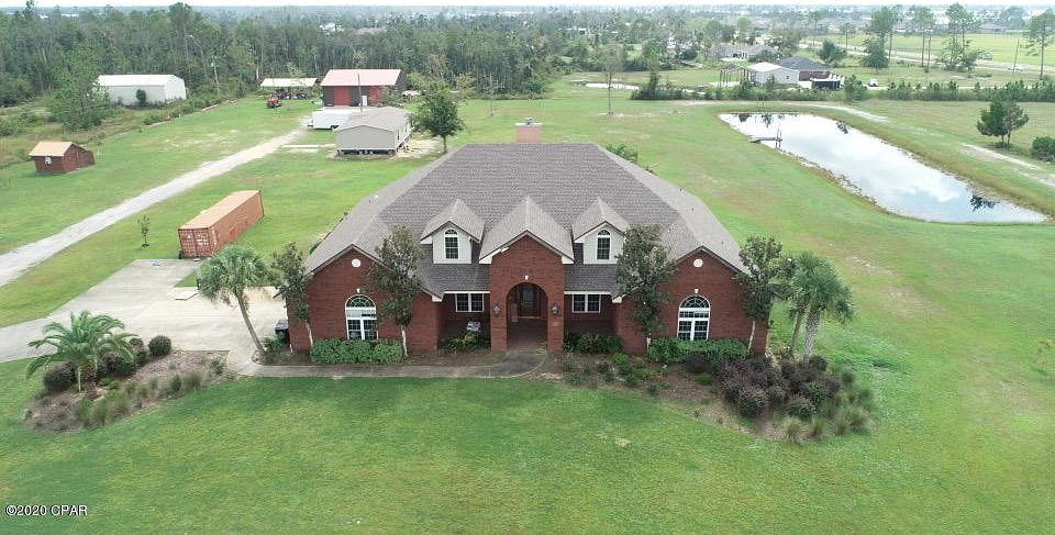 View website: http://7230resotabeachrd.ePropertySites.com - (ALL SIZES TAKEN FROM FLOOR PLANS-APX--VERY DIFFICULT TO MEASURE)EXCEPTIONALLY ELEGANT ALL BRICK CUSTOM 5 BEDROOM, 3 FULL BATHS (AND 3.5 HALF BATHS) SITUATED ON 6.5 ACRES. 12' CEILINGS AND UPGRADED LIGHTING THROUGHOUT. THE MAIN LEVEL OF THIS SPECTACULAR HOME HAS 3 BEDROOMS, 2 FULL BATHS, 2 HALF BATHS, KITCHEN, OFFICE, DINING ROOM, FAMILY ROOM, LIVING ROOM WITH MARBLE FIREPLACE, LAUNDRY ROOM WITH UTILITY SINK AND 1/2 BATH. THE MASTER BEDROOM HAS A BEAUTIFUL FIREPLACE AND LARGE SITTING ROOM AND HUGE WALK-IN CLOSETS WITH CUSTOM CABINETS. THE MASTER BATH IS STUNNING WITH LOTS OF TILE, GREAT LIGHTING, JACUZZI TUB, LARGE WALK-IN TILED SHOWER, DRESSING AREA, AND CUSTOM CABINETS. 2 ADDITIONAL BEDROOMS ON THE FIRST FLOOR WITH A JACK JILL BATH. ONE OF THE FIRST FLOOR BEDROOMS HAS A 7X13 WALK IN CLOSET. THE CUSTOM KITCHEN HAS STATE OF THE ART APPLIANCES, INCLUDING 2 DISHWASHERS, ICE MAKER, DOUBLE OVENS, CUSTOM VENT HOOD, TOP OF THE LINE REFRIGERATOR. THE SECOND LEVEL BOASTS 2 OVERSIZED ADDITIONAL BEDROOMS, A FULL BATH, A RECREATIONAL ROOM AND A HOME THEATER WITH 1/2 BATH AND FULL SERVICE BAR WITH ICE MAKER. SURROUND SOUND AND INTERCOM SYSTEM THROUGHOUT THE HOME. OVERSIZED 2 CAR ATTACHED GARAGE WITH AUTO OPENERS. THE OUTSIDE IS AN OASIS WITH A LANAI OVERLOOKING THE IN GROUND CUSTOM CONCRETE POOL WITH FIBER-OPTIC LIGHTING, MOST OF THE 6 ACRES IS MANICURED AND LANDSCAPED WITH A FULL IRRIGATION SYSTEM AND A NICE STOCKED FISH POND. THE PROPERTY IS COMPLETELY FENCED AND AT THE BACK OF THE PROPERTY IS A HUGE 50'x50'METAL WORKSHOP THAT IS LARGE ENOUGH TO FIT A FULL SIZED RV. WORKSHOP HAS A SEPARATE ROOM WITH A/C UNIT. HORSES ARE ALLOWED HERE AND THIS WOULD MAKE A FANTASTIC LITTLE FARM (NEAR HOSPITAL,SHOPPING,BEAUTIFUL DEERPOINT LAKE), THE INFRASTRUCTURE IS ALREADY IN PLACE WITH ROADS AND FENCING. THIS IS DEFINITELY A MUST SEE HOME, AND SHOWN BY APPOINTMENT ONLY. PLEASE CALL FOR YOUR PRIVATE VIEWING TODAY. (All sizes approximate and estimate, buyer to verify if important).