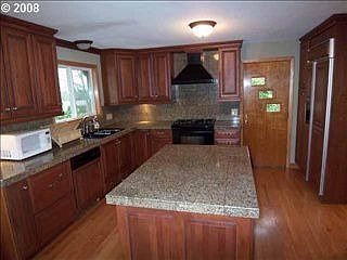 This nicely updated light and bright daylight ranch home sits at the top of the hill near Multnomah Village. Gleaming hardwood floors throughout the main level. Features include formal living and dining room with fireplace, an updated cherry kitchen with island and granite counter tops, family room with a fireplace, plus 3 bedrooms and 2 full baths on the main floor. The lower level features a spacious family room with slider to patio, the 4th bedroom, french doors opening to the office, and a large bathroom/laundry room. There is also an extra large 2 car garage on the lower level. All of this sits on a large corner lot with a Mt. Hood view, forced air gas heat, on demand gas hot water heater and more!