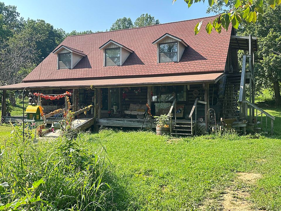 Wonderful opportunity to own a log home with so much charm sitting on 3 rolling acres. Home needs some loving touches to rejuvenate it. Huge covered porch, needs some love too. Several outbuildings for workshop space and storage. Please do not walk around property without your buyer agent. Cash only buyers please.