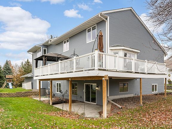 Explore this exceptional home situated in a serene cul-de-sac setting, offering unparalleled value within a 3-mile radius. The just-painted interior walls radiate a fresh & inviting atmosphere. The main level offers high vaulted ceilings creating a grand atmosphere. The owner’s suite features a jetted tub, along with a stunning balcony, for moments of relaxation. Recently updated, new carpet in the basement & a newly refinished railing leading to the upper level. The lower level provides a delightful bar & expansive space, perfect for entertaining guests & creating unforgettable memories. Notably, this home showcases recent upgrades, including a new roof, siding, & windows, ensuring both aesthetic allure & structural integrity. Adding to its appeal, the property boasts an enormous 1,123 sq ft garage, ideal for multiple vehicles.