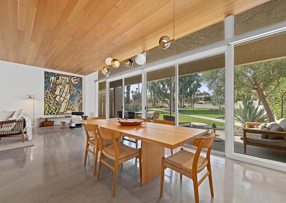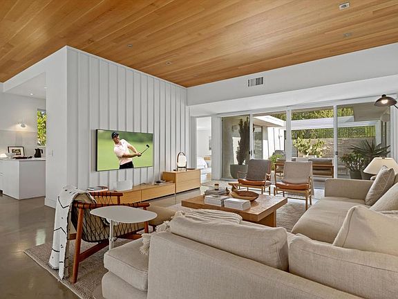 This stunning mid-century condo, designed by the renowned William Krisel, is a true gem located in the iconic Sandpiper community in Palm Desert. Featuring 3 bedrooms and 3 full bathrooms, it underwent a comprehensive remodel in 2021/2022, blending modern style with the essence of mid-century design.The home boasts high ceilings, polished concrete floors, and the signature clerestory windows in the living room that flood the space with natural light. The expansive enclosed courtyard offers a large, south-facing patio perfect for soaking in the beautiful mountain views while maintaining a sense of complete privacy. The pool is conveniently located off to the side, and the open space in front of the patio only enhances the secluded ambiance.The kitchen is a true highlight, featuring Italian Boffi cabinetry known for its sleek design and functional use of space. Top-of-the-line appliances include a Wolf double oven/cooktop, Gaggenau refrigerator, and wine cooler--ideal for anyone who loves to entertain. The floor plan ensures great separation between the primary bedroom and the guest rooms, each offering direct access to the outdoors, either to the private courtyard or the patio.The open-concept living area is designed for both comfort and entertainment, offering flexible spaces for dining indoors or out while enjoying the breathtaking desert views. A single-car garage provides easy access and convenience just outside the unit.Located just a stone's throw away from El Paseo, Palm Desert's vibrant shopping and dining hub, this condo epitomizes desert living at its finest. This property is truly a must-see!